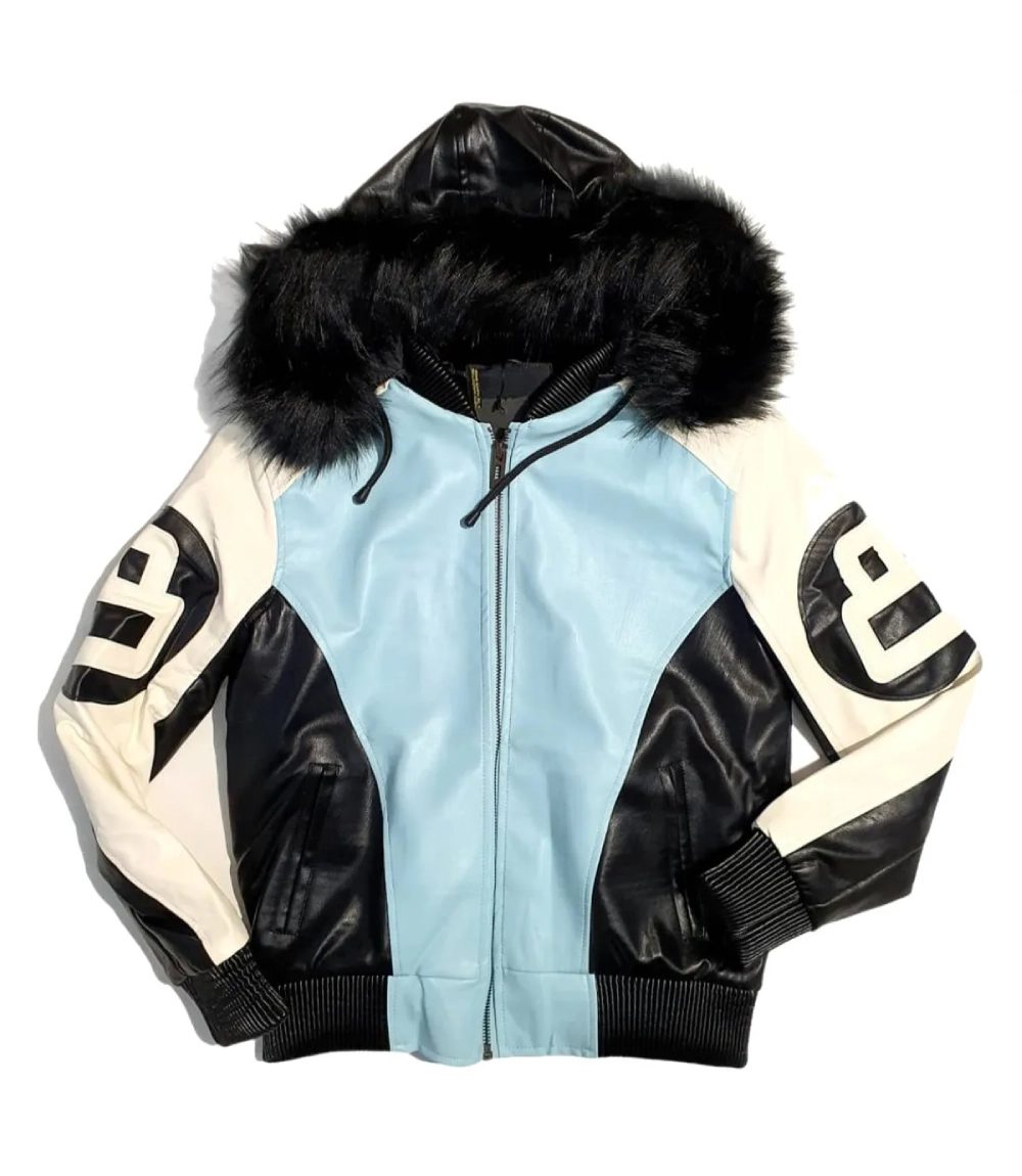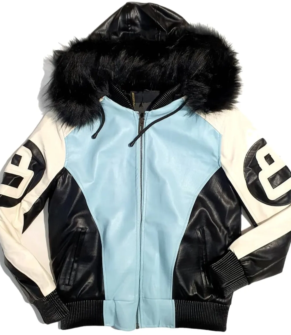 8 Ball Leather Jacket – Sky Blue & Black Stussy Style Streetwear