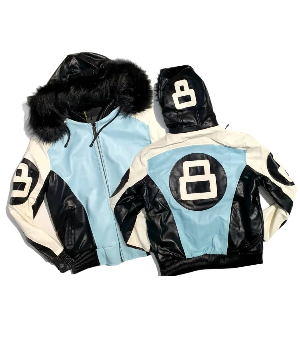 Channel the energy of bold ‘90s streetwear with our Sky Blue & Black 8 Ball Leather Jacket – a Stussy-style statement that turns heads. Featuring a signature 8 Ball patch, contrasting cut-and-sew panels, and premium comfort, this jacket is made for those who lead with style and confidence.
