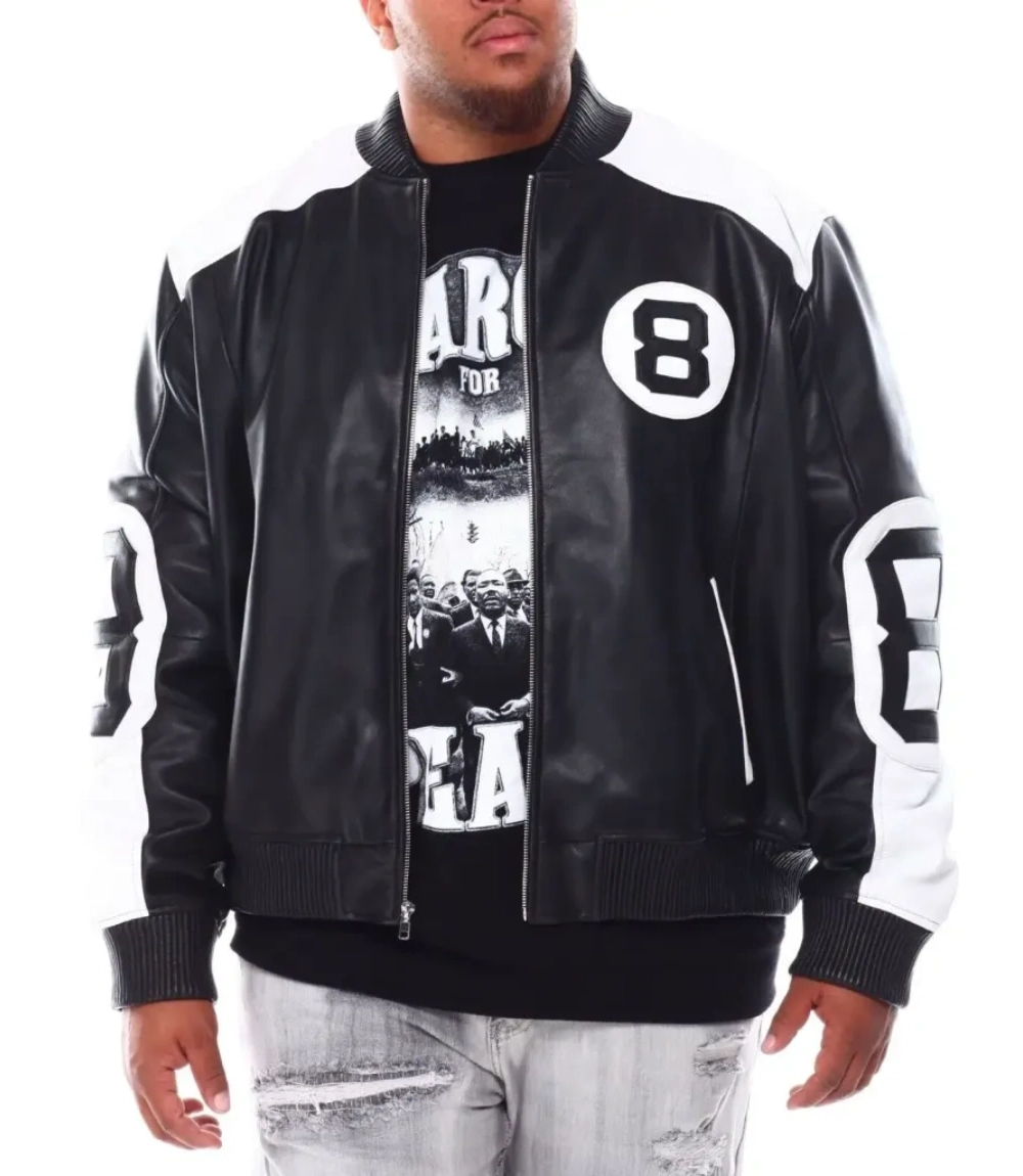 Men’s 8 Ball Black & White Leather Jacket – Big & Tall Edition