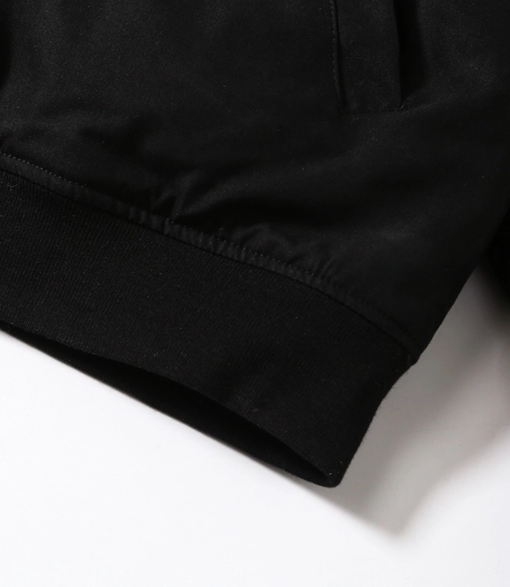 - Ribbed collar, cuffs, and hem for a snug fit