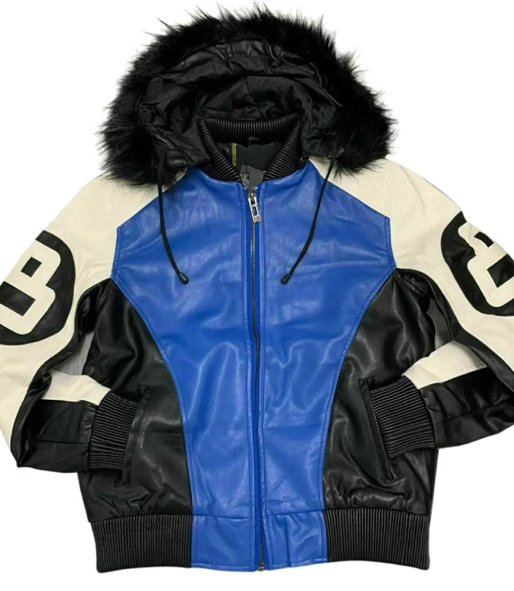 Stussy Robert Phillipe Blue 8 Ball Jacket – Leather Hooded Bomber