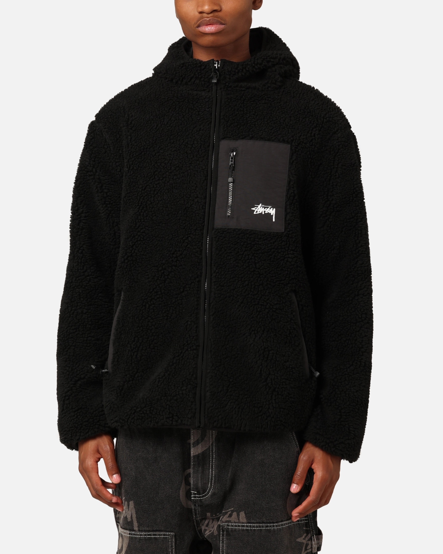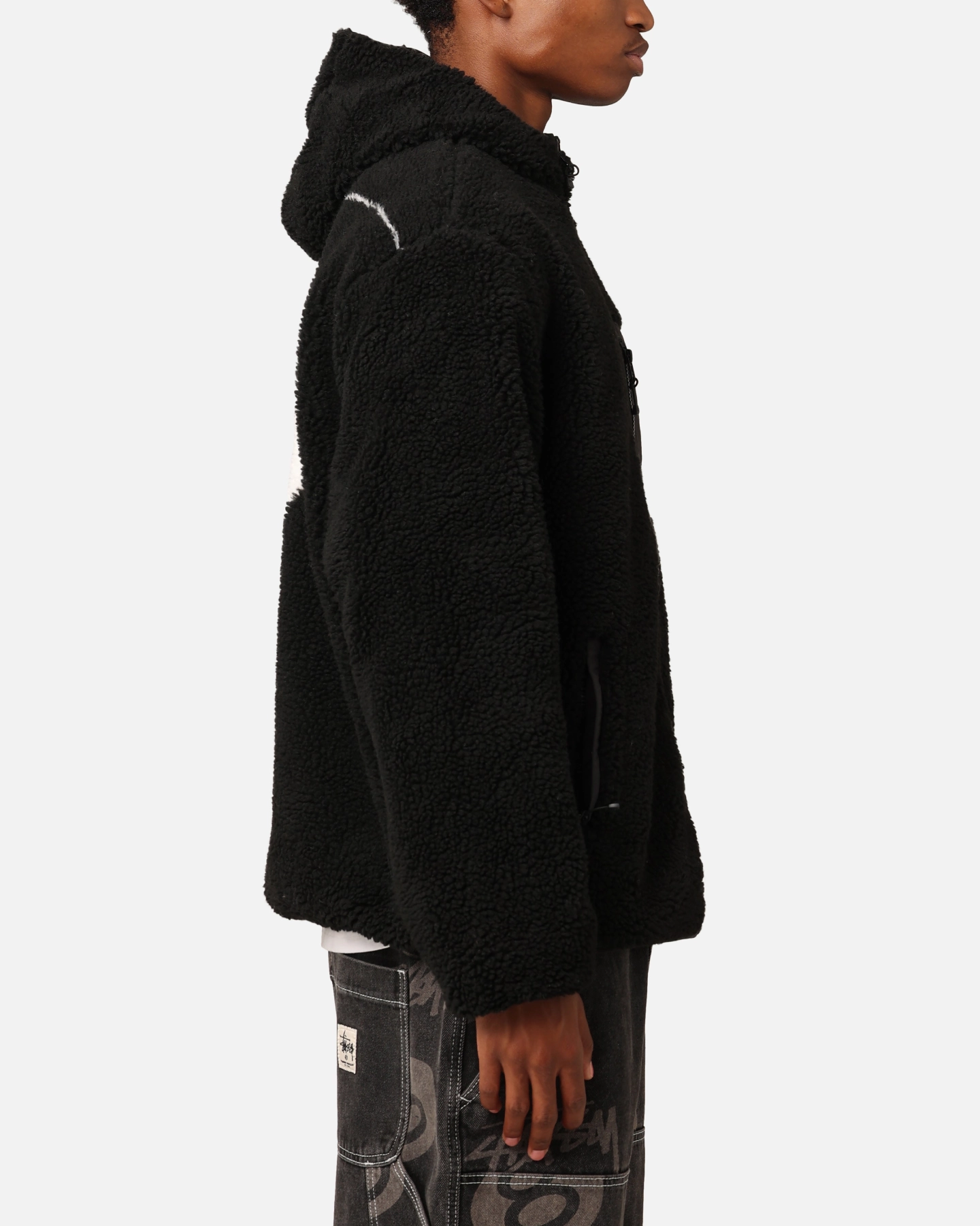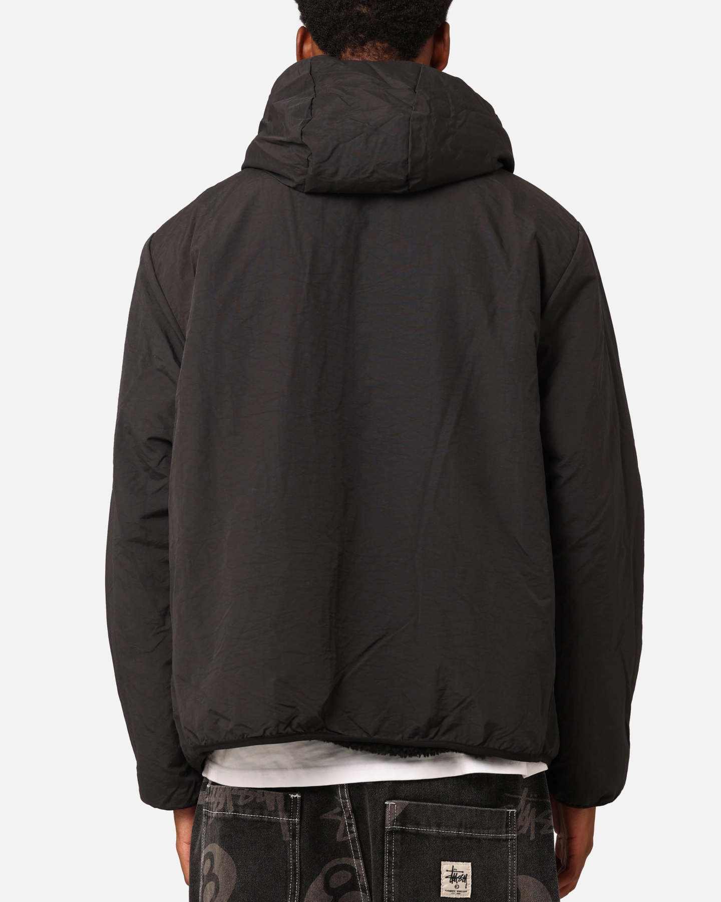 Stussy 8 Ball Hooded Black Sherpa Jacket – Reversible