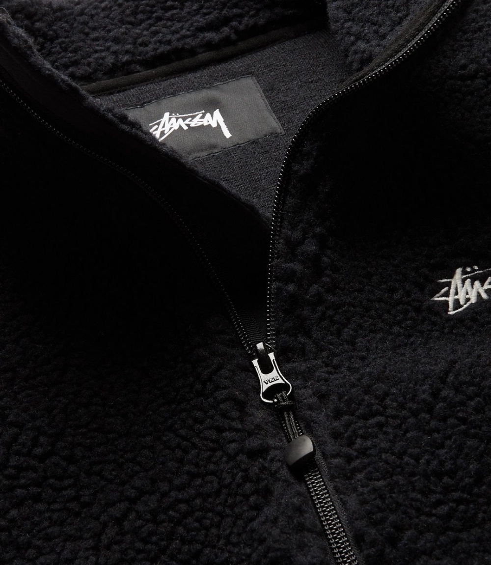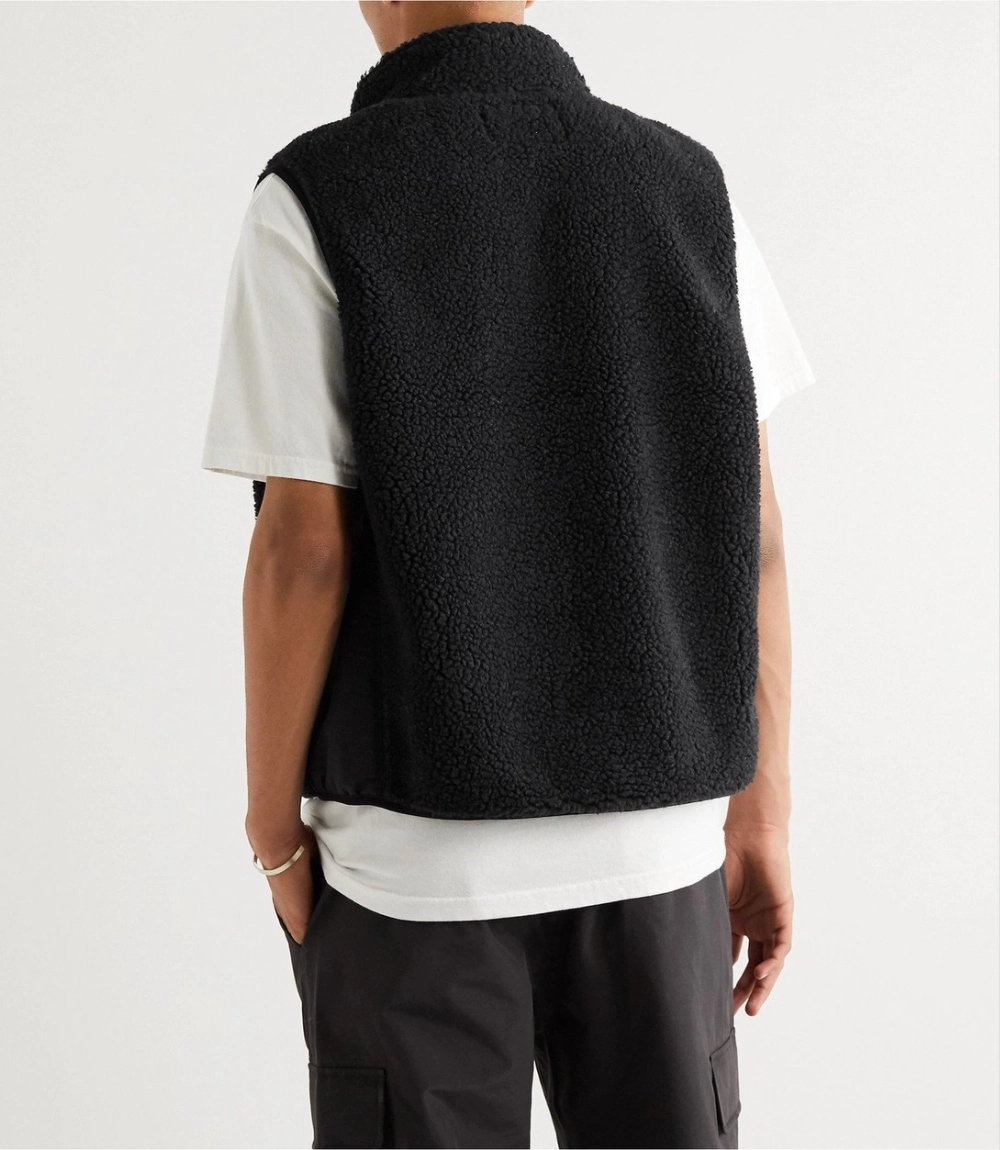 Stüssy Black Fleece Gilet with Nylon Trim – Logo Embroidered Vest