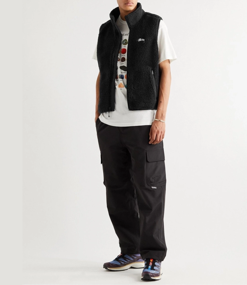 1 review for Stüssy Black Fleece Gilet with Nylon Trim – Logo Embroidered Vest