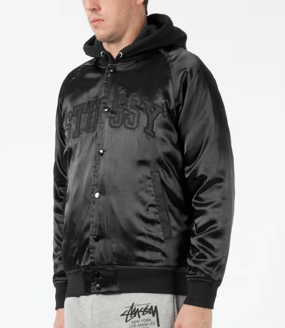 Wore this Stussy black satin bomber to a friend’s party got multiple compliments; looks and feels premium