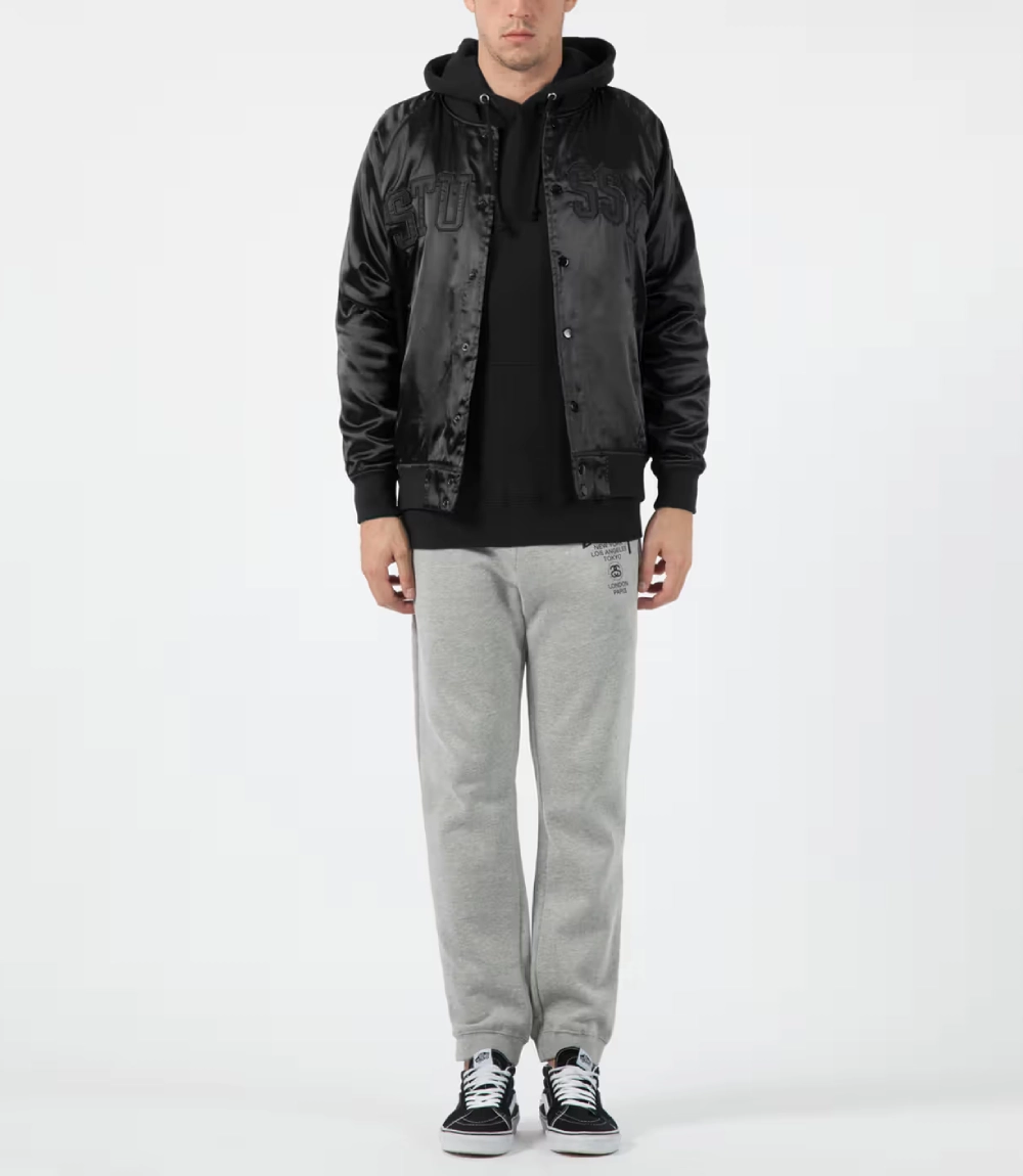 Stussy Black Satin Bomber Jacket – Classic Minimalist Style
