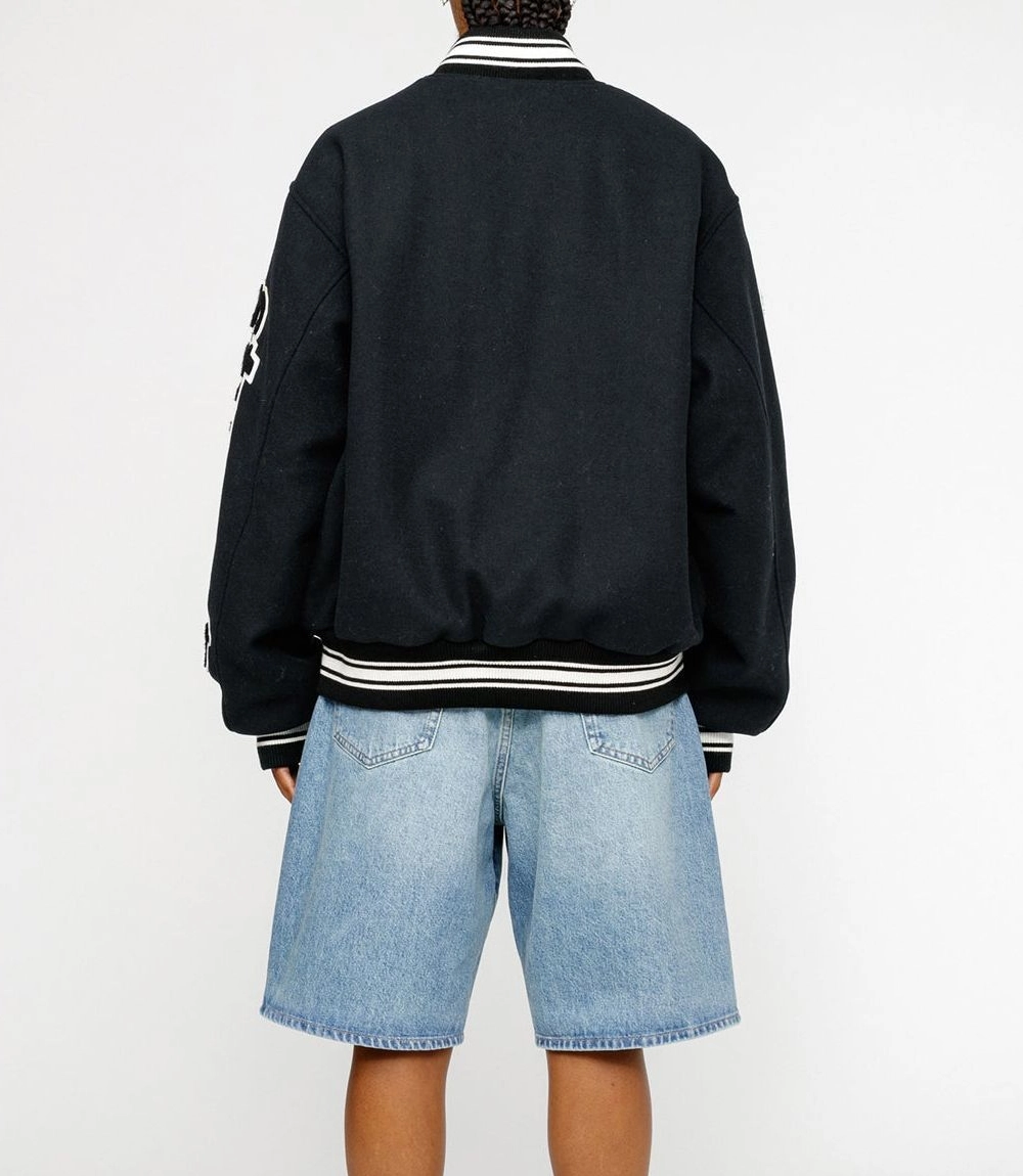 Stussy Black Varsity Competition Jacket – Wool Oversized Letterman Jacket