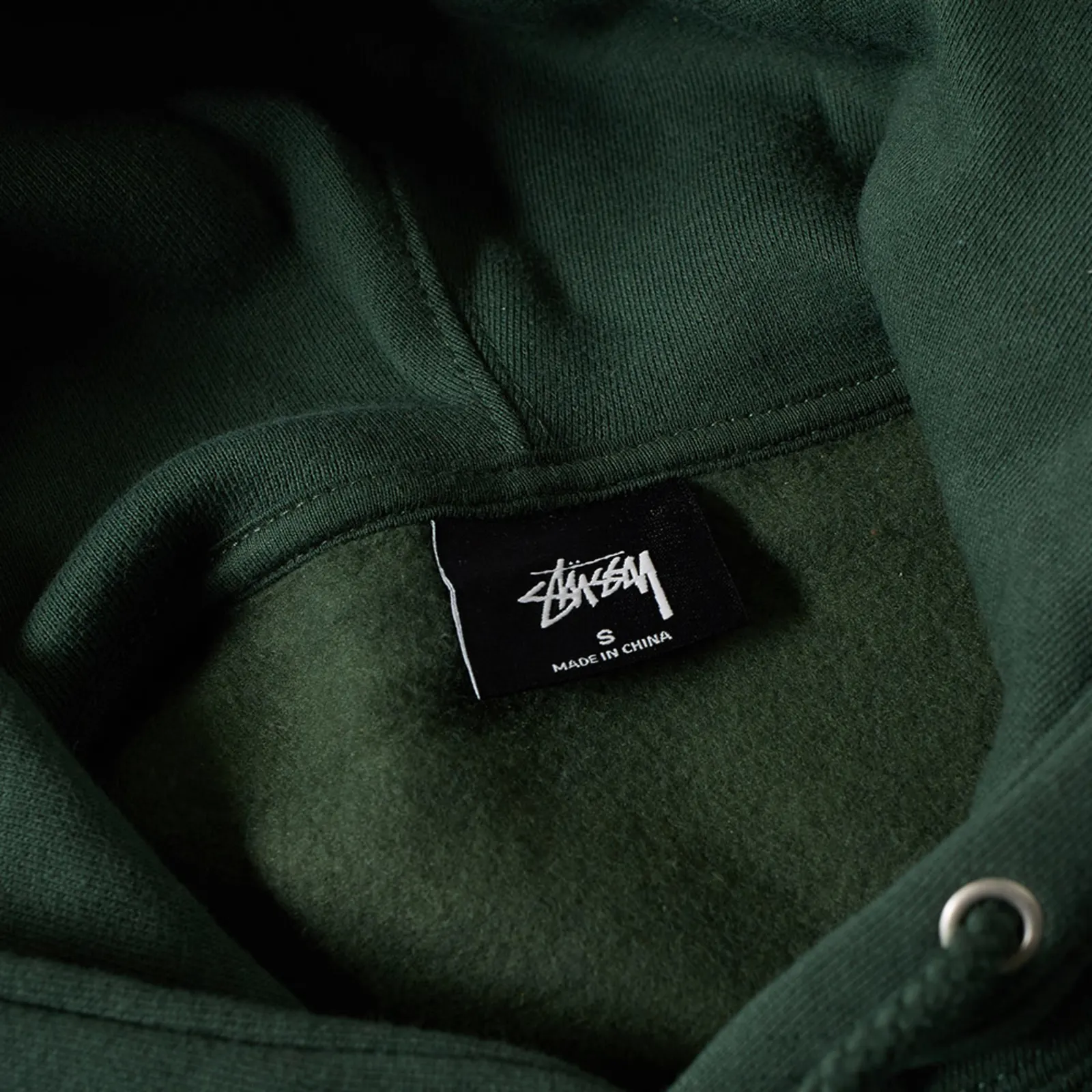 - Deep forest‑green cotton fleece with soft brushed back