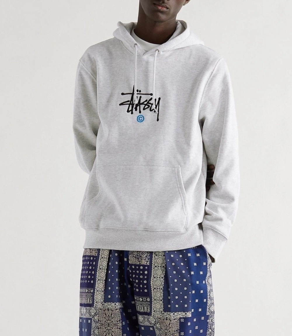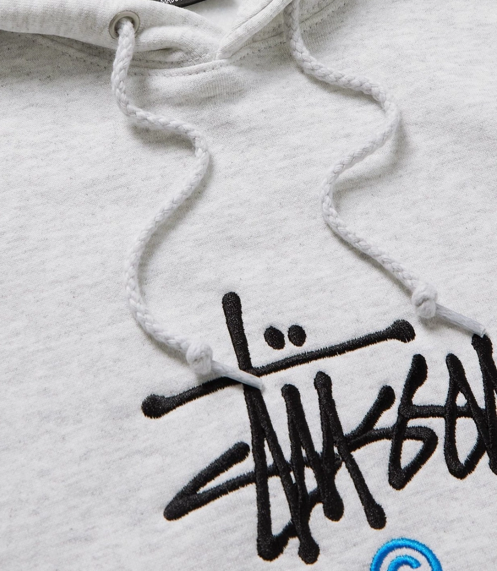 - Classic grey hoodie with clean Stussy logo embroidery