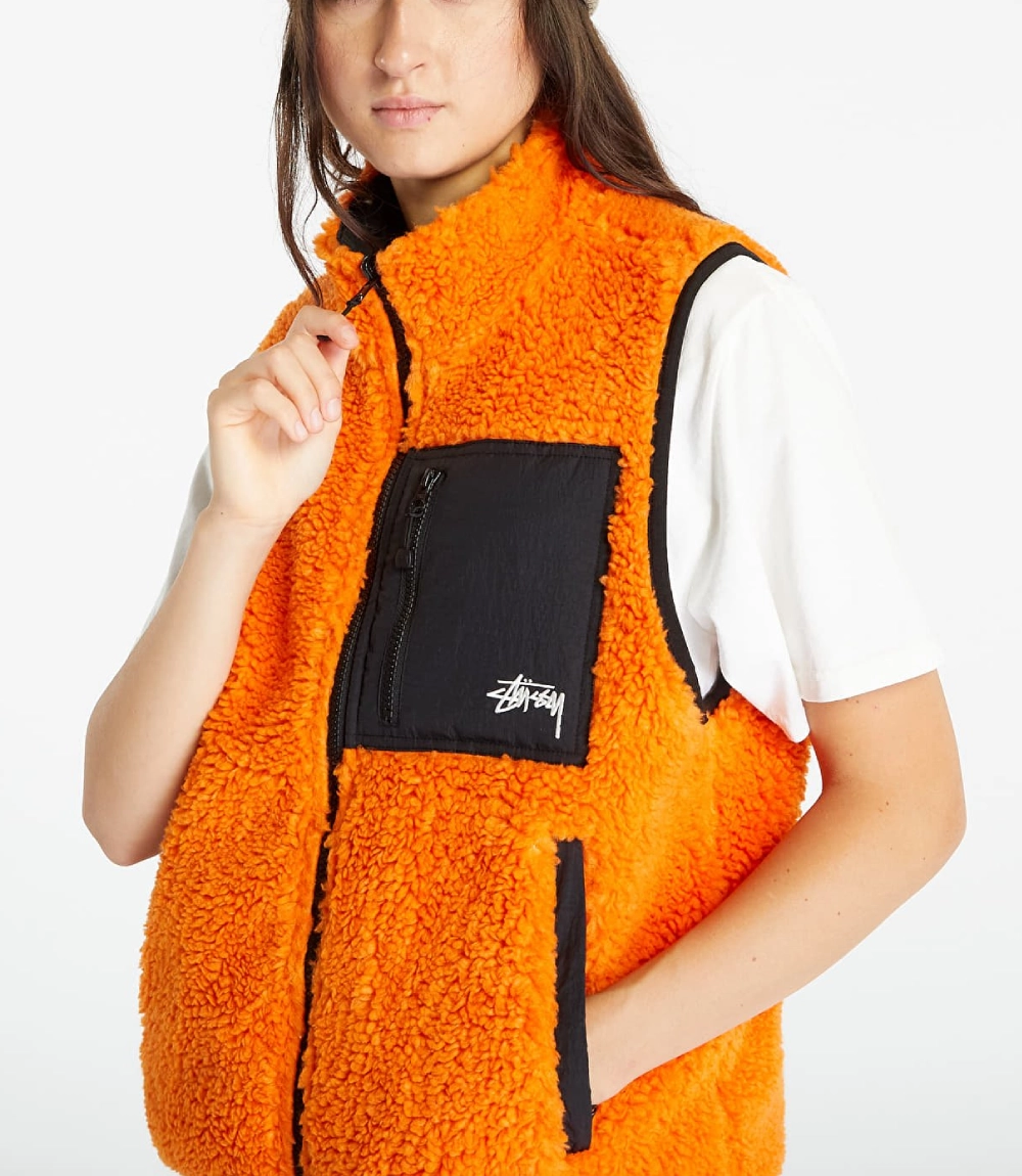 Stussy Reversible Sherpa Vest – Tangerine Utility Fleece