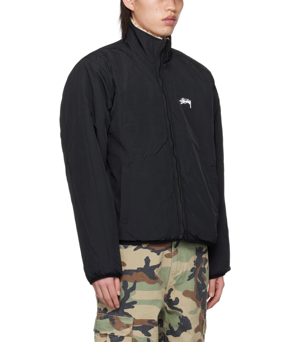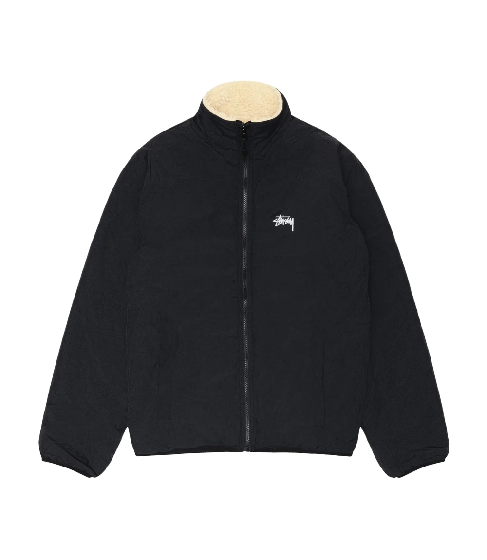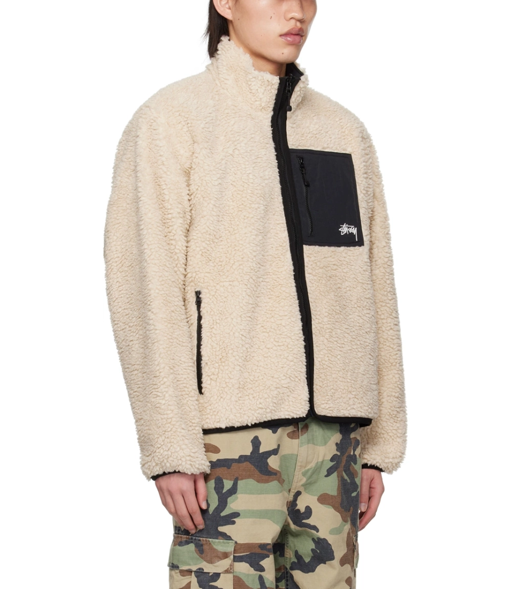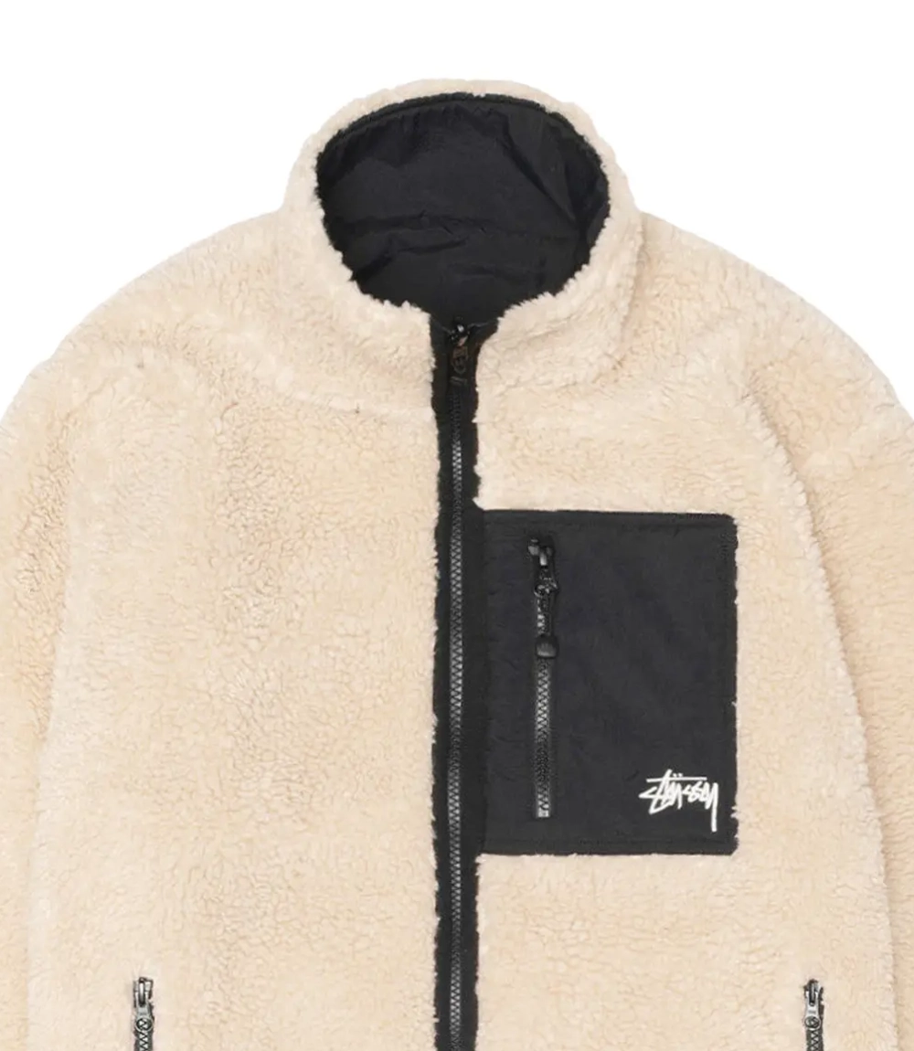 Stussy Sherpa Reversible Jacket – Beige & Nylon Streetwear Layer
