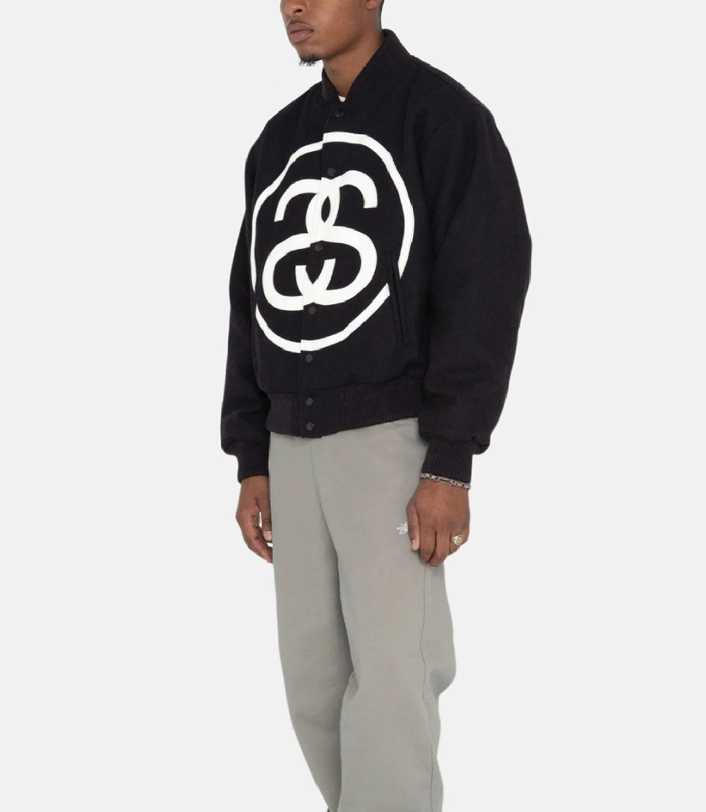 Stüssy SS Logo Varsity Jacket – Premium Wool & Leather in Black