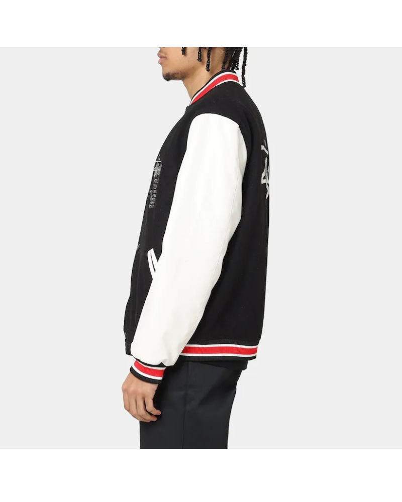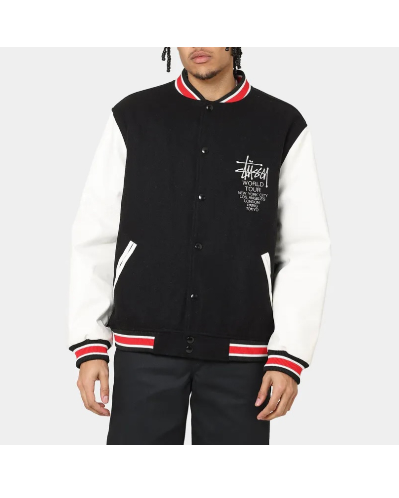 Stussy World Tour Varsity Jacket – Black & White Varsity Jacket